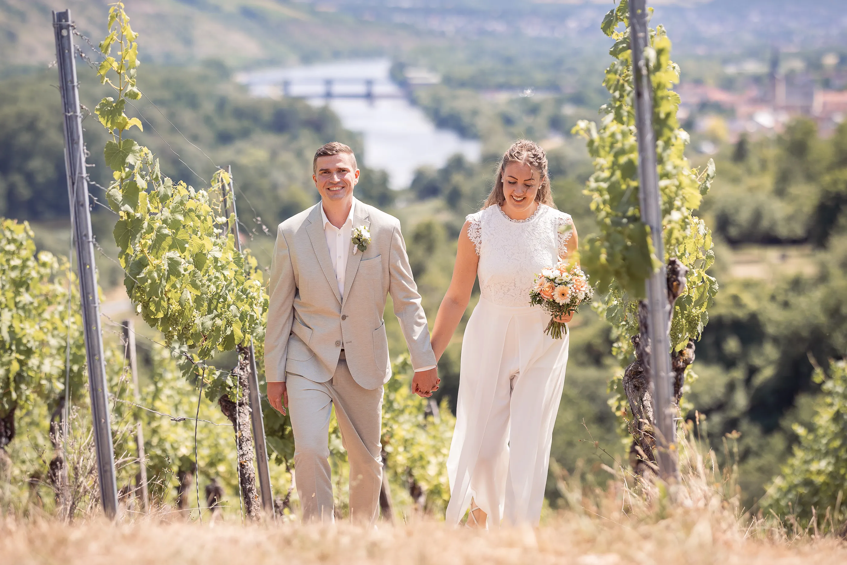 Der Tag von Lea und Sebastian begann mit dem Getting Ready im Hotel. Beim First Look in den Weinbergen bei Erlabrunn trafen sich die beiden zum ersten Mal. Ein stiller Moment voller Emotionen und schöner Überraschungen.