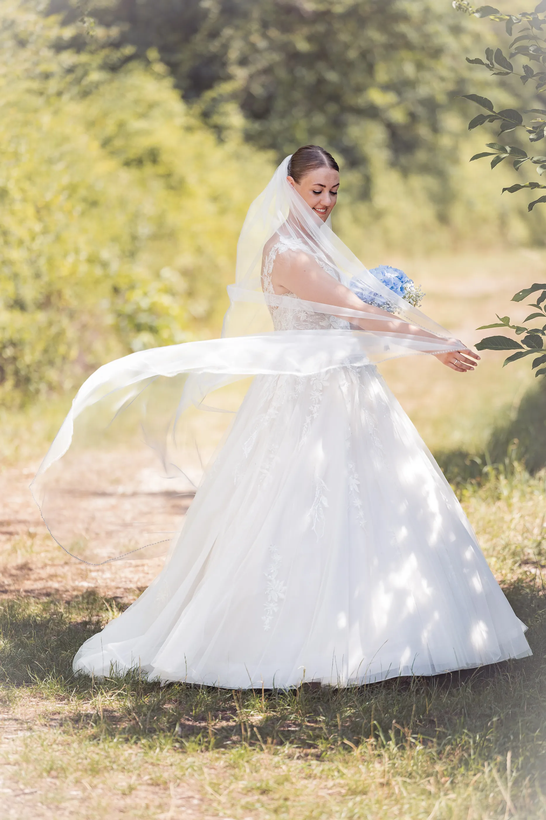 Beim Brautpaarshooting zeigte sich ihre Nähe und Vertrautheit in jeder Aufnahme. Am Abend verwandelte sich die Feier in eine ausgelassene Party. Mit dem Hochzeitstanz begann ein unvergesslicher Abend voller Freude, Musik und Emotionen.