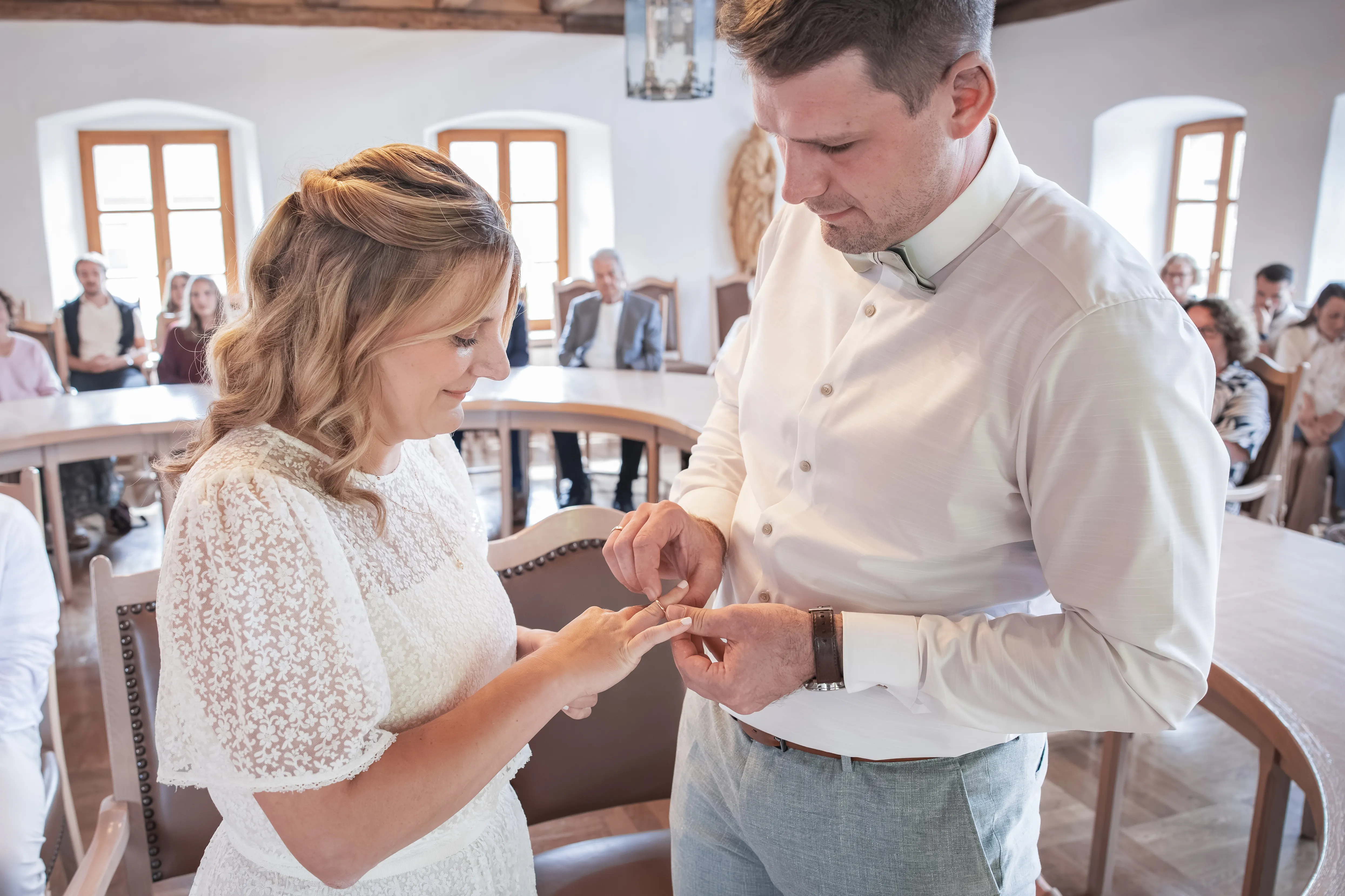 Johanna und Florian gaben sich im engen Kreis von Familie und Freunden das Ja-Wort. Die Zeremonie war vertraut, herzlich und voller Nähe.