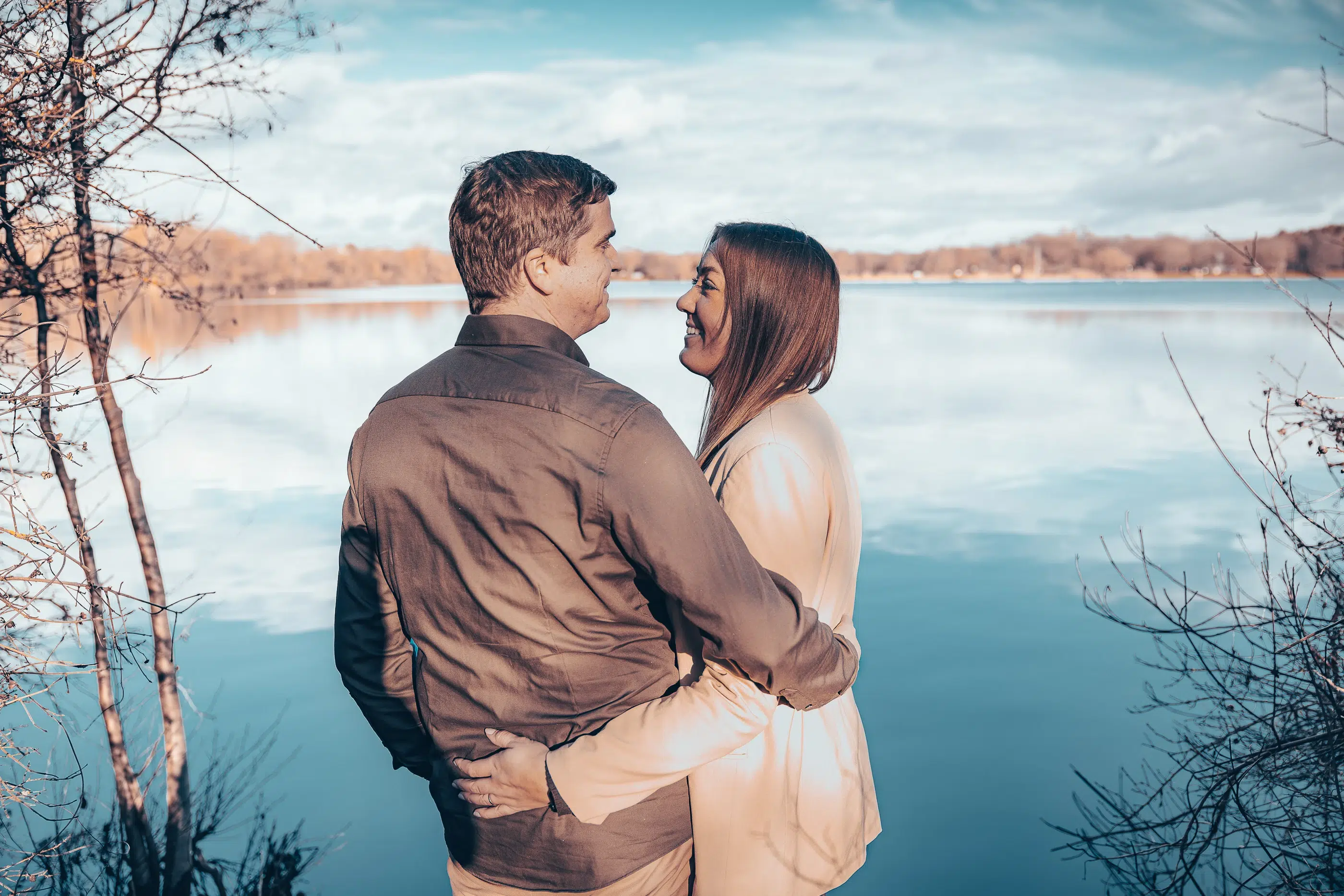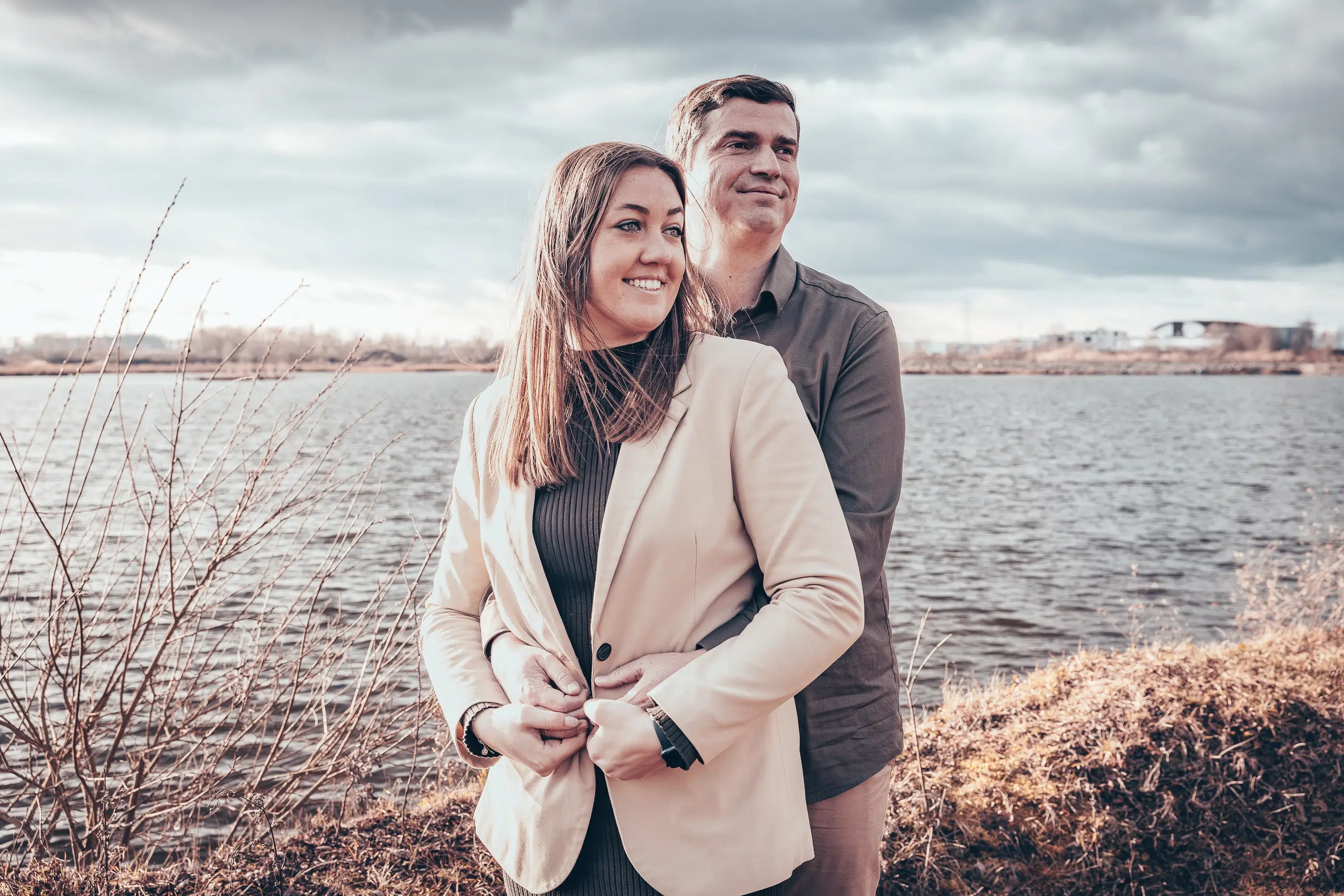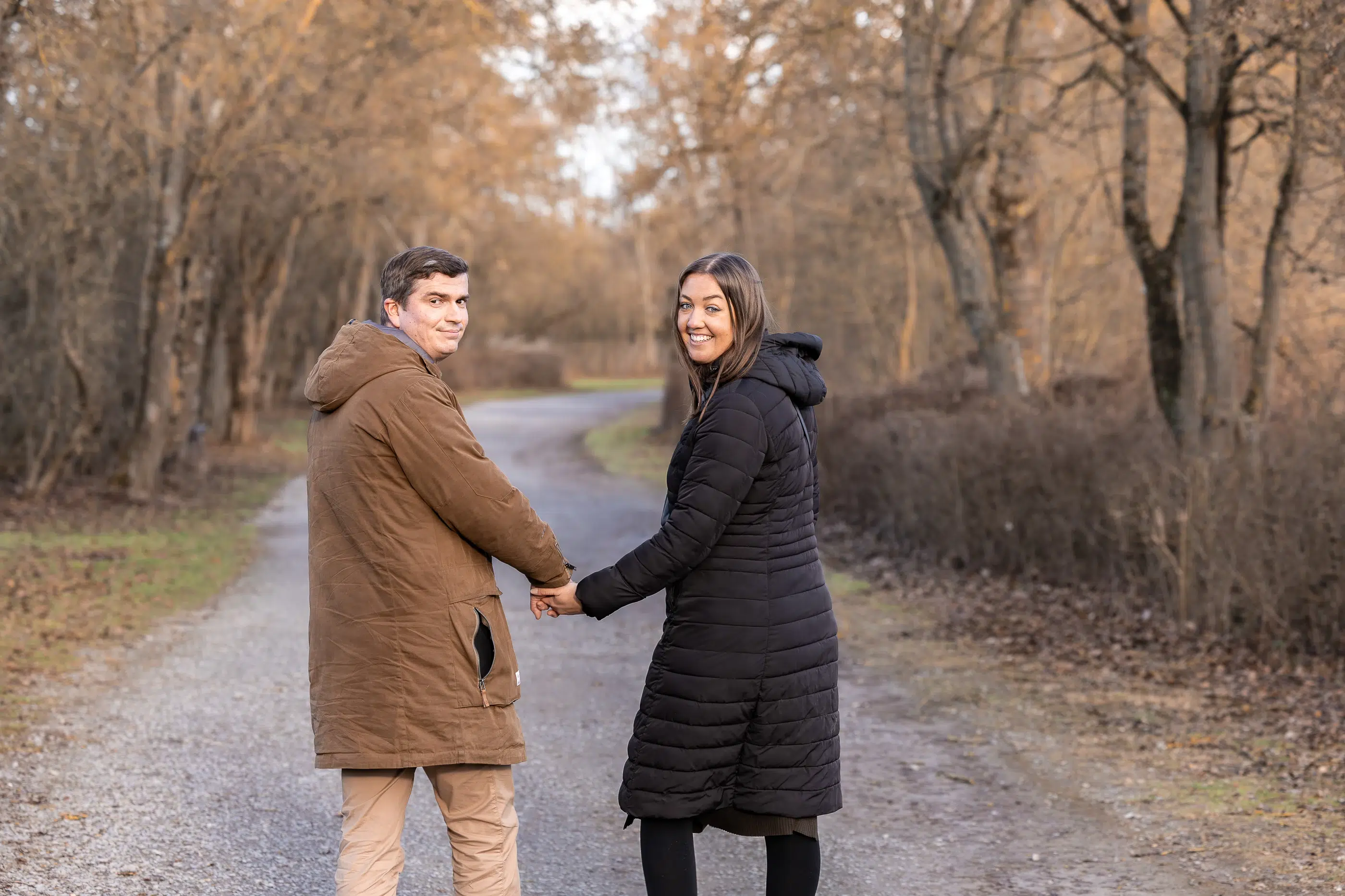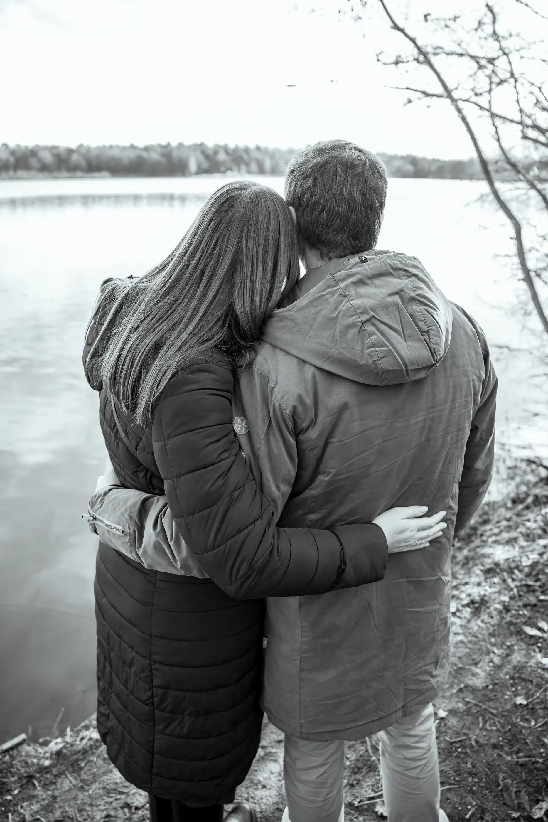 Ein kalter Januartag, aber mit ganz viel Wärme zwischen zwei Menschen: Lea und Sebastian nutzten ihr Engagement-Shooting am See bei Schwebheim, um sich ganz entspannt auf ihre Hochzeitsreportage einzustimmen.
