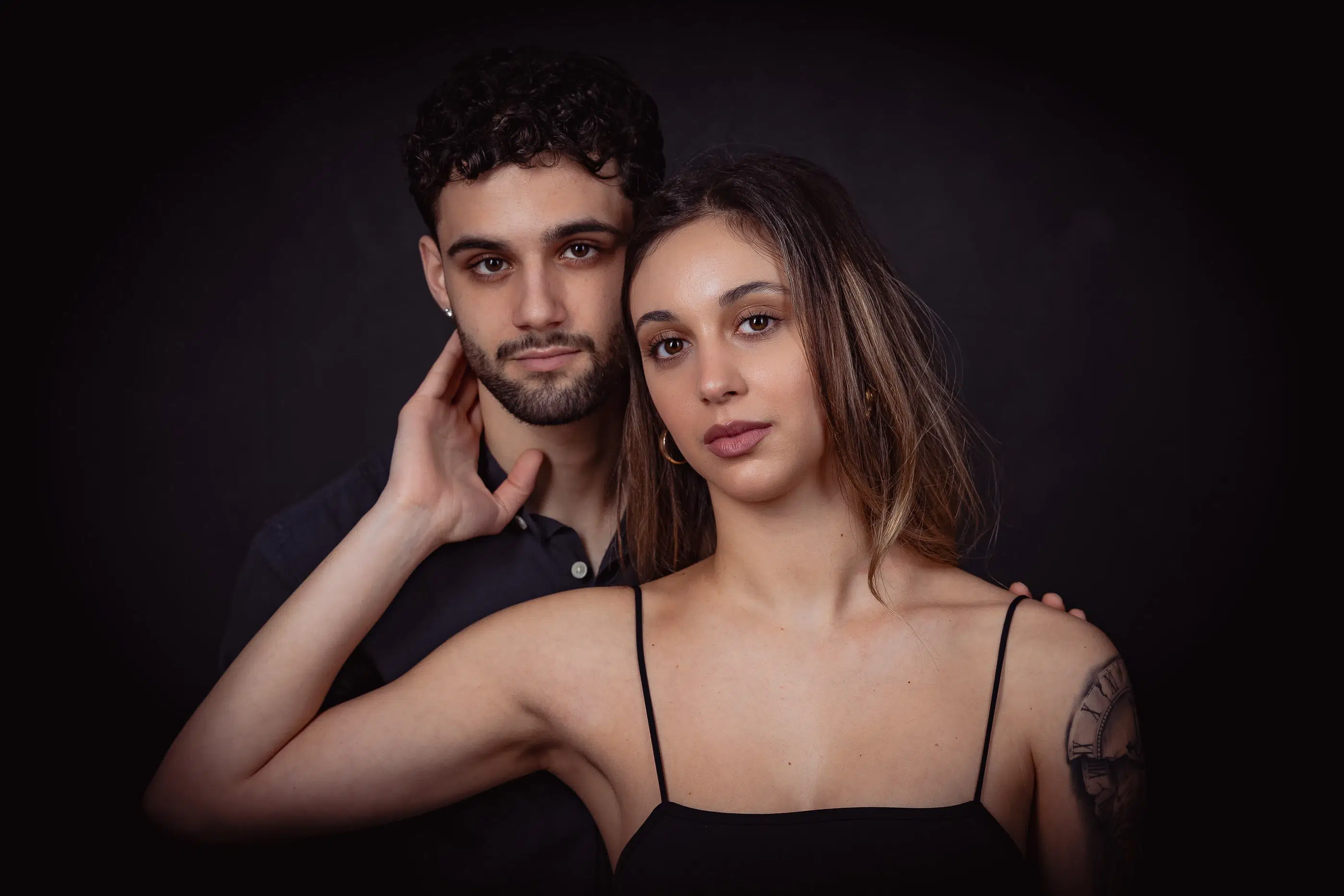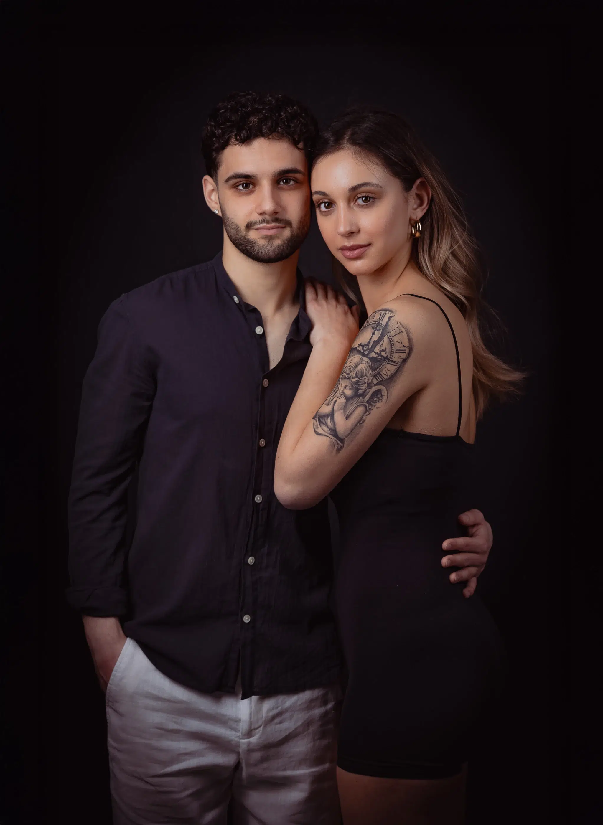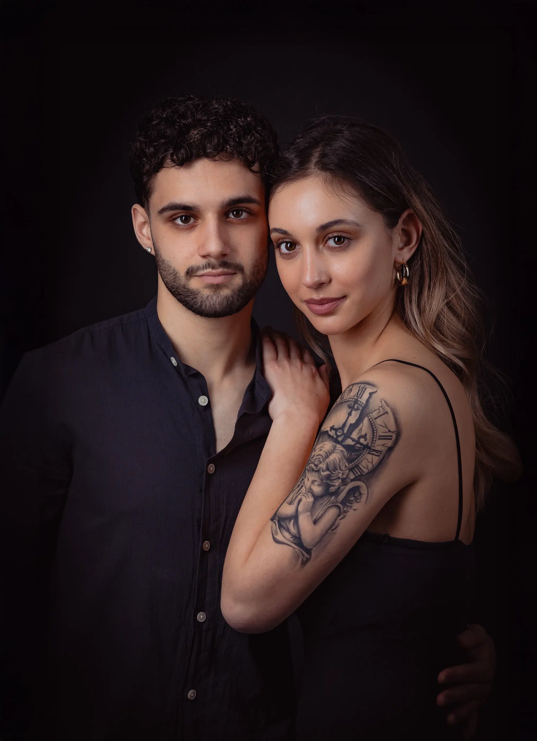 Ein schlichtes Studioshooting, das zeigt, wie stark Zweisamkeit ohne große Kulisse wirken kann.
