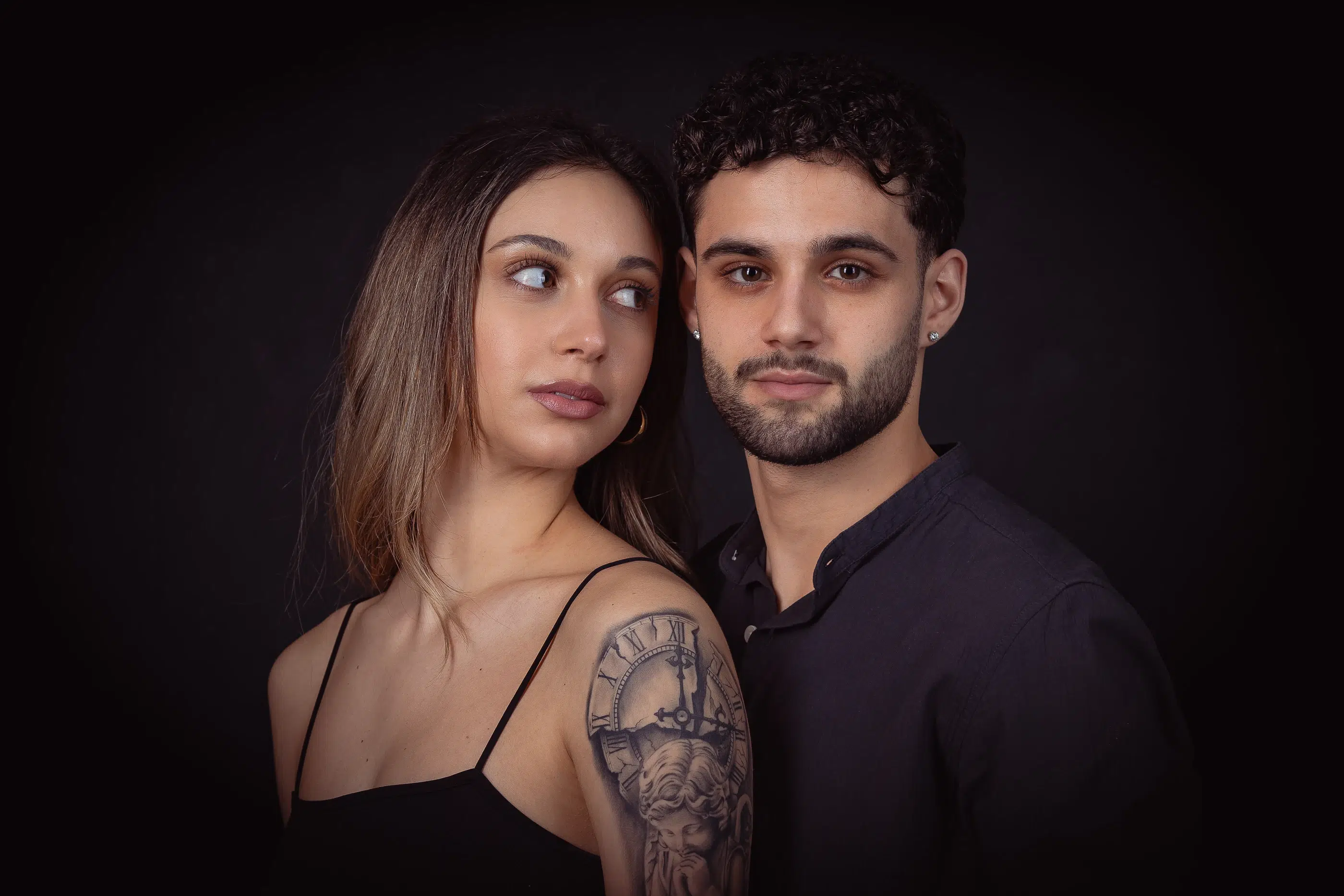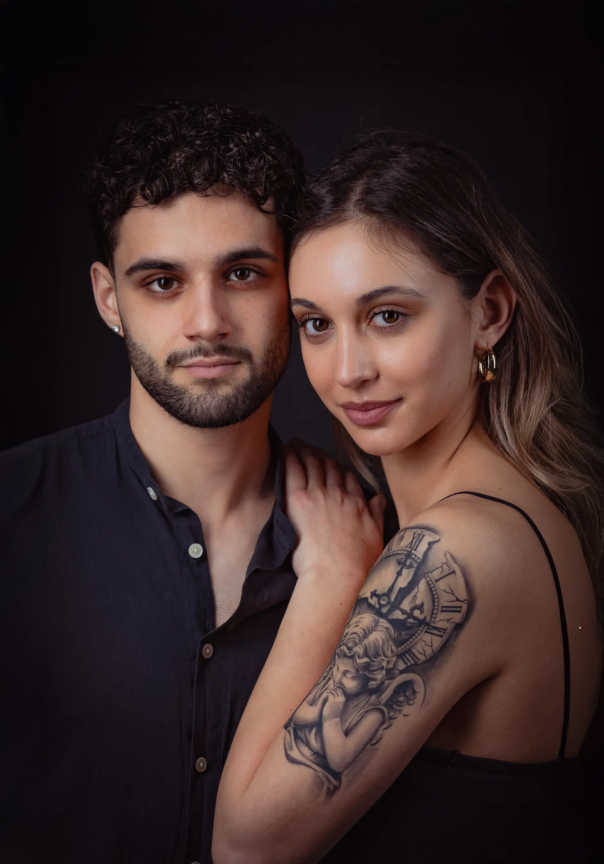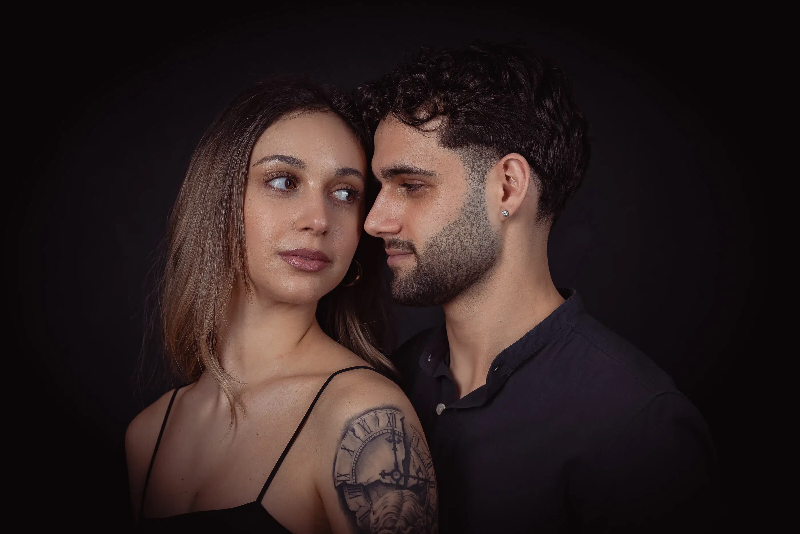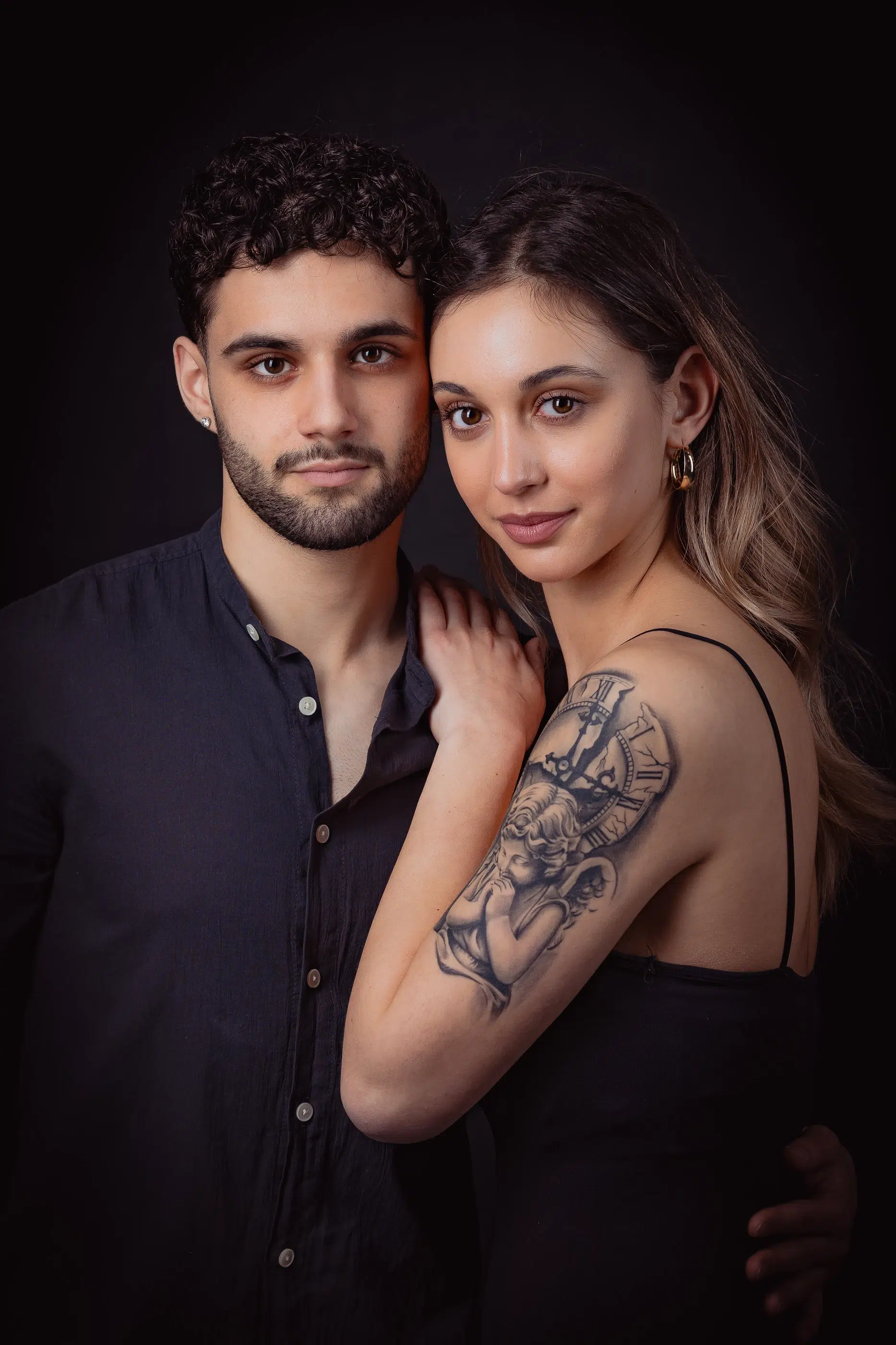 Ein schlichtes Studioshooting, das zeigt, wie stark Zweisamkeit ohne große Kulisse wirken kann.